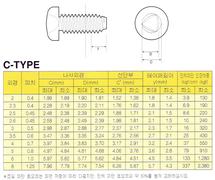 HOME > 제품소개 > 나사 | TAP TTITE 나사규격
