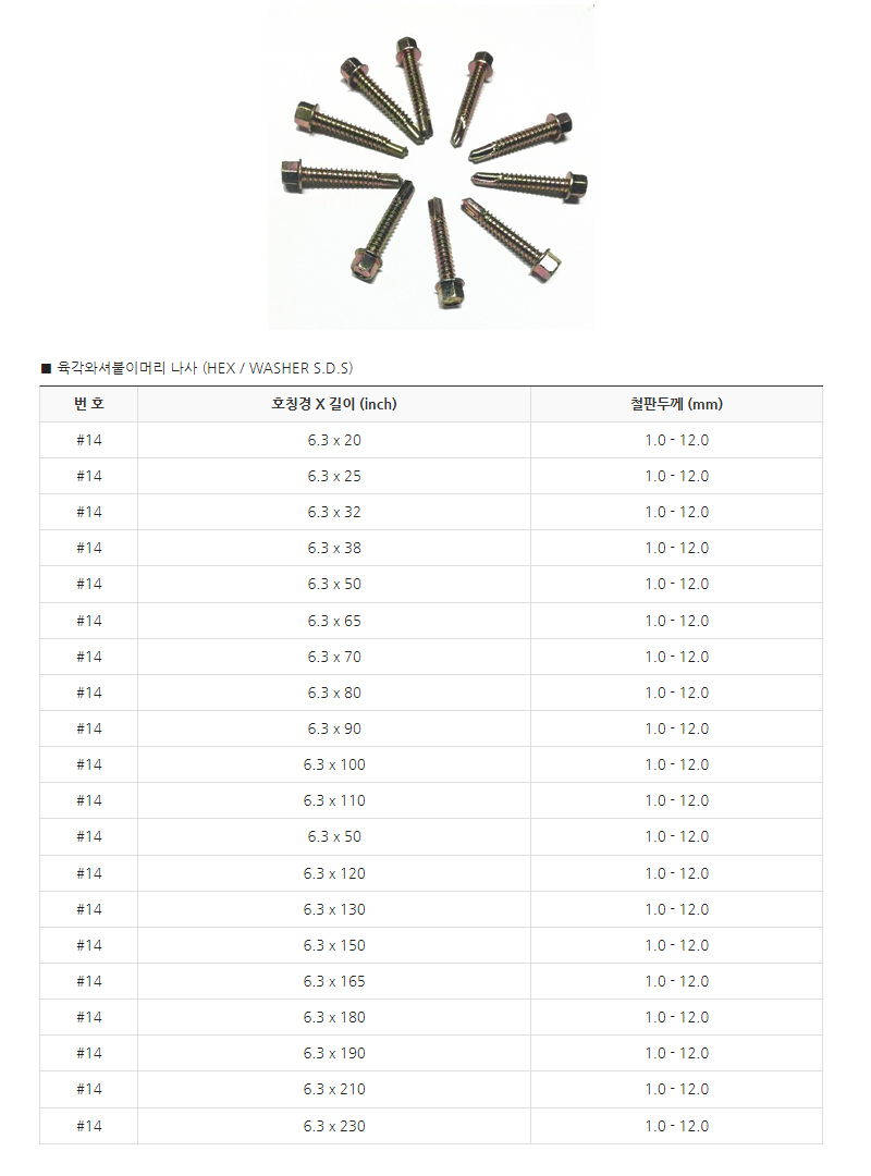 HOME > 제품소개 > 나사 | 육각직결피스