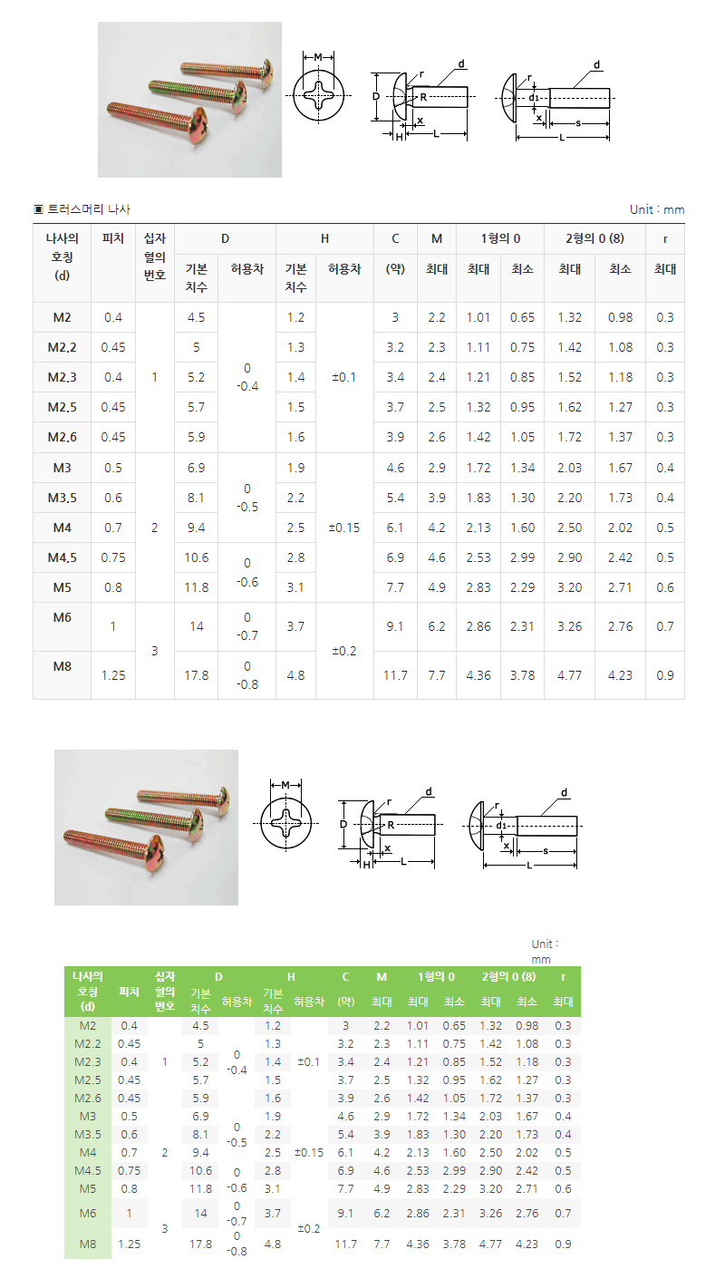 HOME > 제품소개 > 나사 | 트러스머리 나사